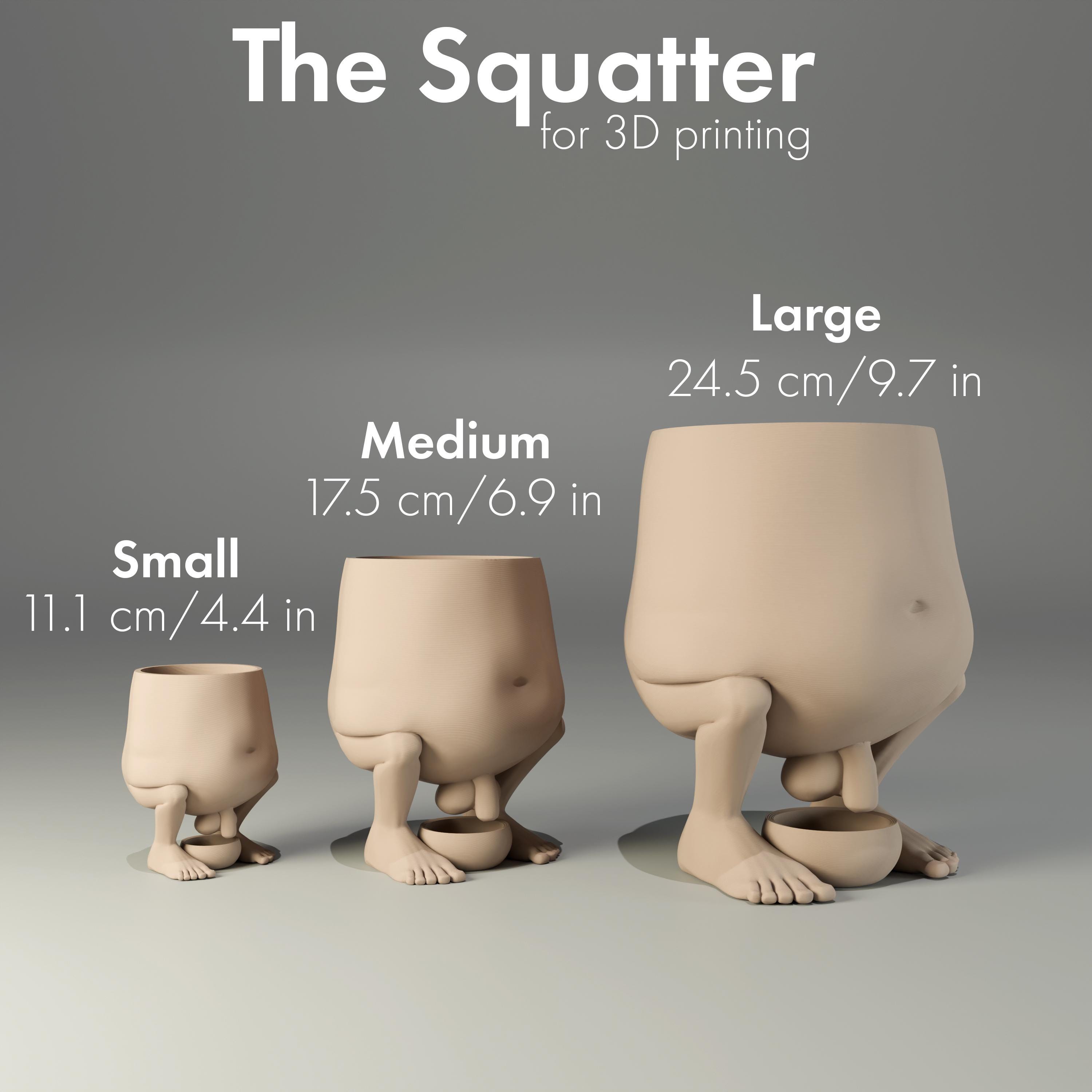 This listing is a DIGITAL DOWNLOAD for STL files to 3D print your Squatter pot. You will need to have an FDM (filament) printer to print these yourself - no physical item will be shipped. Prints well on most filament printers. PLA or PETG filament are recommended. Supports are required. This print is of MEDIUM DIFFICULTY, and results depend on your print settings and skill level operating your printer. Ensure your printer is well-calibrated before printing.